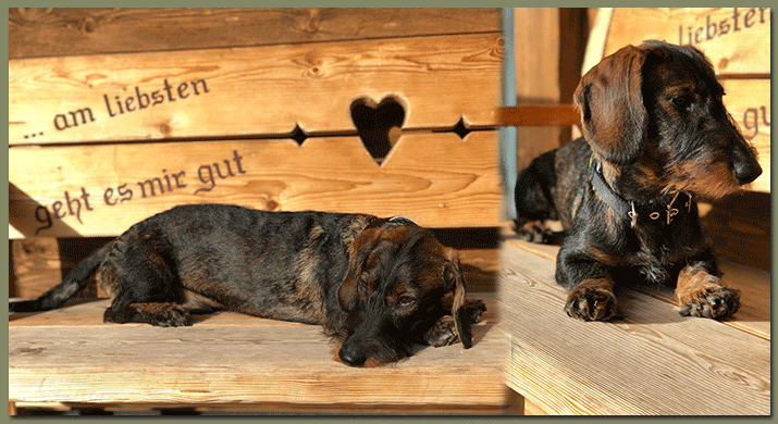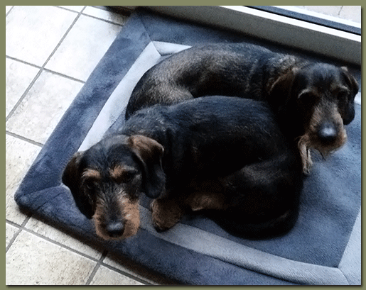 Unseren Dackels geht es sehr gut, sie sind munterer denn je. Paddy wird ja morgen nun schon vier Jahre alt und wir können es gar nicht glauben, dass sie schon so lange bei uns sind. Die beiden verstehen sich sehr gut und toben total niedlich zusammen durch die Welt. Nicht nur bei uns zu Hause haben Paddy und Bärli Fans, sondern auch bei uns im Stadtwald haben sie unzählige! Wir sind sehr froh, dass wir diese tollen Dackels bei uns haben!