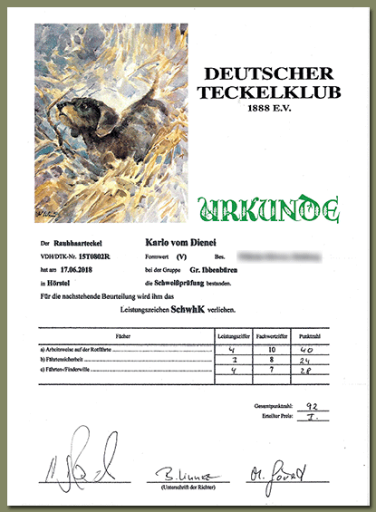 Karlo vom Dienei hat die SchwhK im 1. Preis bestanden ...