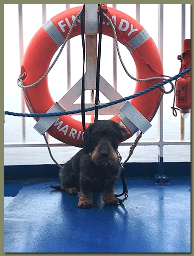 Napoleon ist jetzt ein Globetrotter Dackel. Selbst auf der Fähre konnte ihn nichts aus der Fassung bringen. |