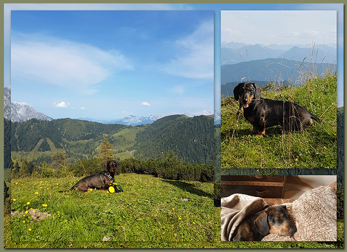 Lotte ist zurück aus ihrem ersten Urlaub in Bayern und hat Autofahrt, ihre erste Bus- und U-Bahnfahrt, den ersten Aufenthalt im Hotel und Ausland gut überstanden. Als es noch nicht so heiß war, ist sie fleißig gewandert und hat sich sehr gut benommen. Bis bald Kara-Lotte und Familie ... |