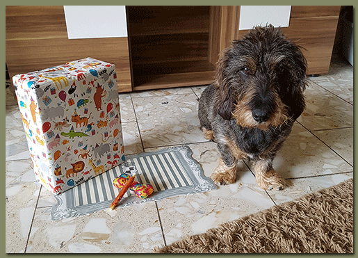 Beim Rumtoben im Neuschnee vor zwei Wochen hatte ich schon so auf eine weiße Weihnacht gehofft. Leider wird da wohl nichts draus. Meine Geburtstagsfeier letzten Monat habe ich wieder ausgiebig gefeiert, wobei Frauchen dann schon meinte, dass es mit der wilden Pubi-Zeit langsam vorbei sei.